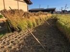 収穫後の乾燥は稲架掛け(はさがけ)を行い太陽の元で天日干ししています。色彩選別機を通して斑点米などを極力取り除いたきれいなもち米です。